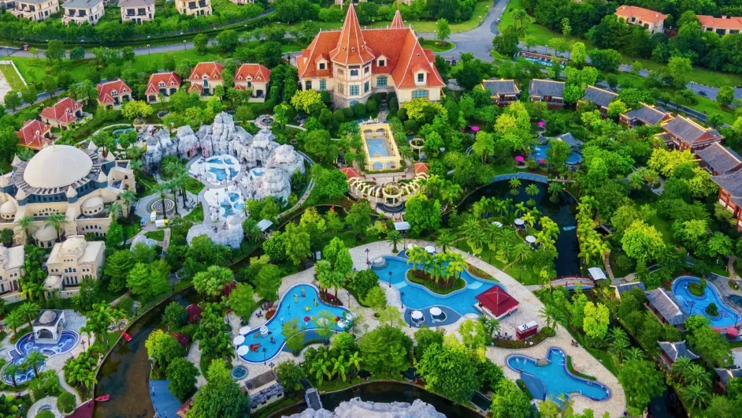 五国风情温泉小镇是景区的亮眼名片,1.6万平方米的异域风情区,将泰国、日本、芬兰、意大利、土耳其的温泉文化精髓尽数展现,让游客不出国就能体验多元温泉乐趣。